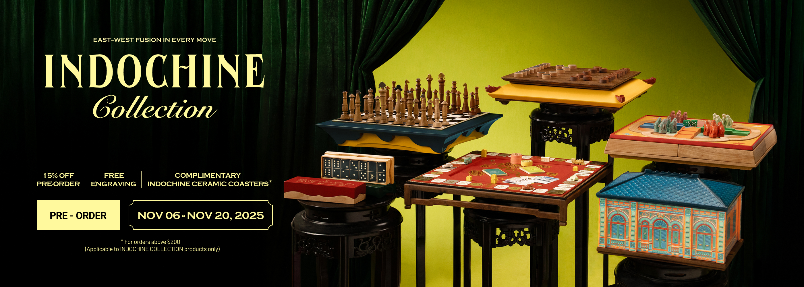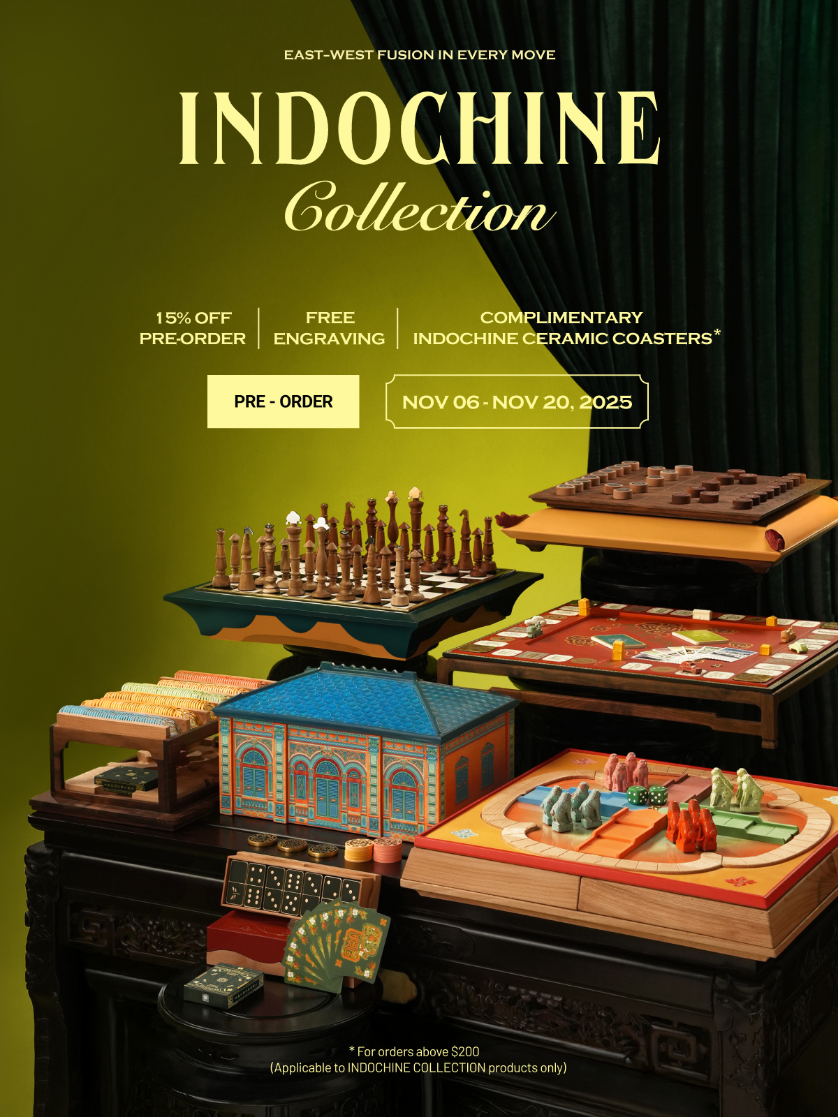 Finest level of craftsmanship. This Premium Mahjong Set takes 40 hours to finish, crafted by 15 skillful artisans from our studio based in Saigon, Vietnam.