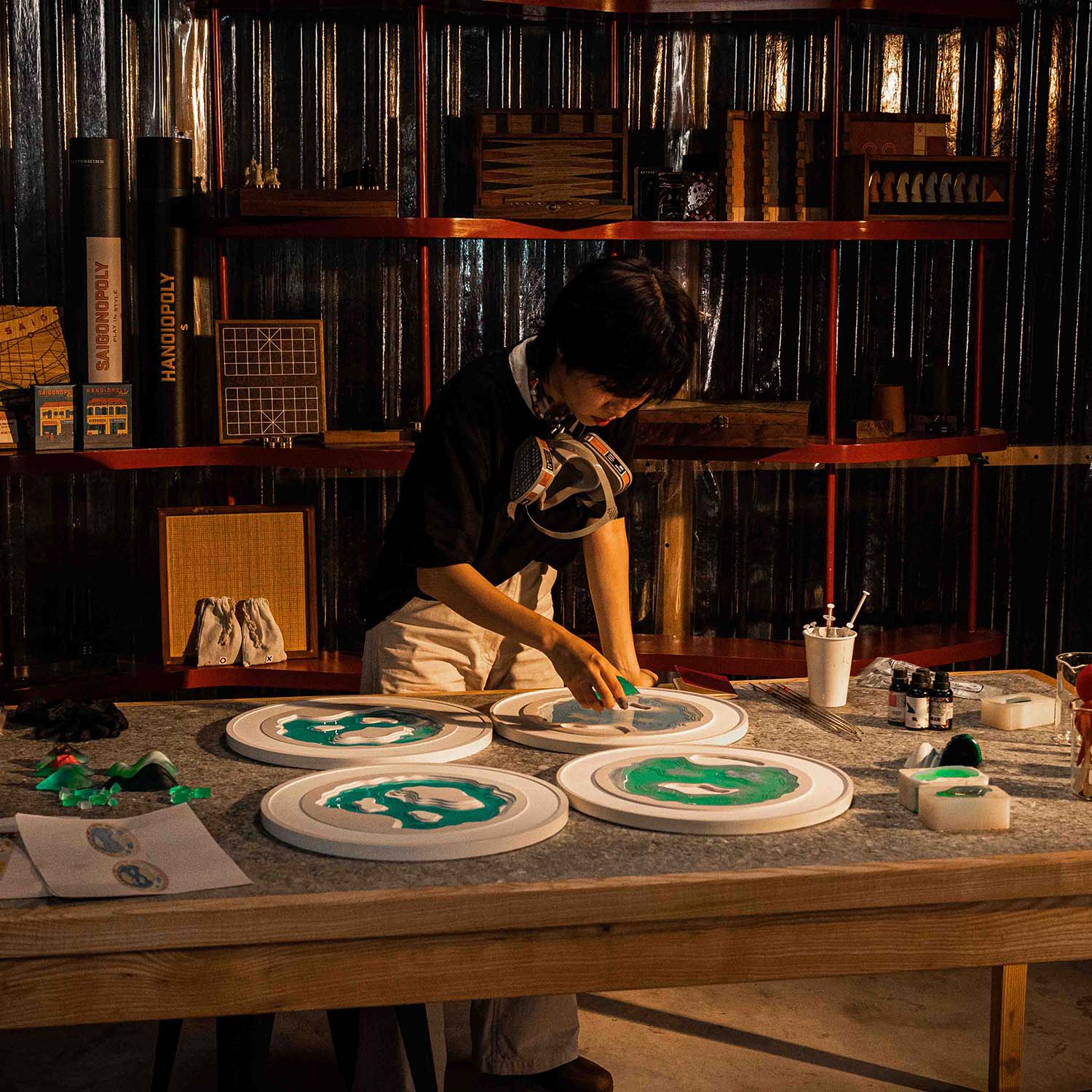 Color mixing: To create the exact shade, our team of artisans spends hours in the workshop searching and mixing every single color together for the beauty of each piece. For instance, a Lumina Ludo piece weighing only 12 grams was tested up to 100 times to finally get the perfectly vivid gradient shades.