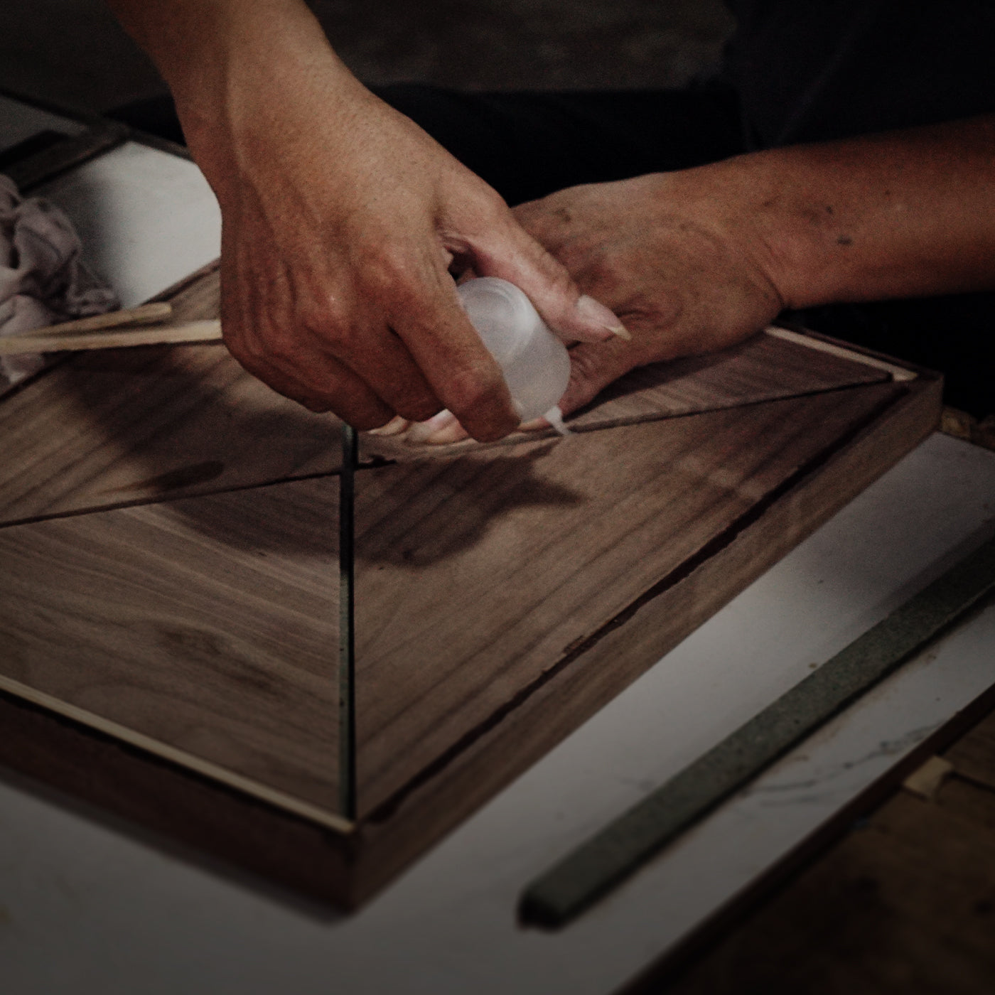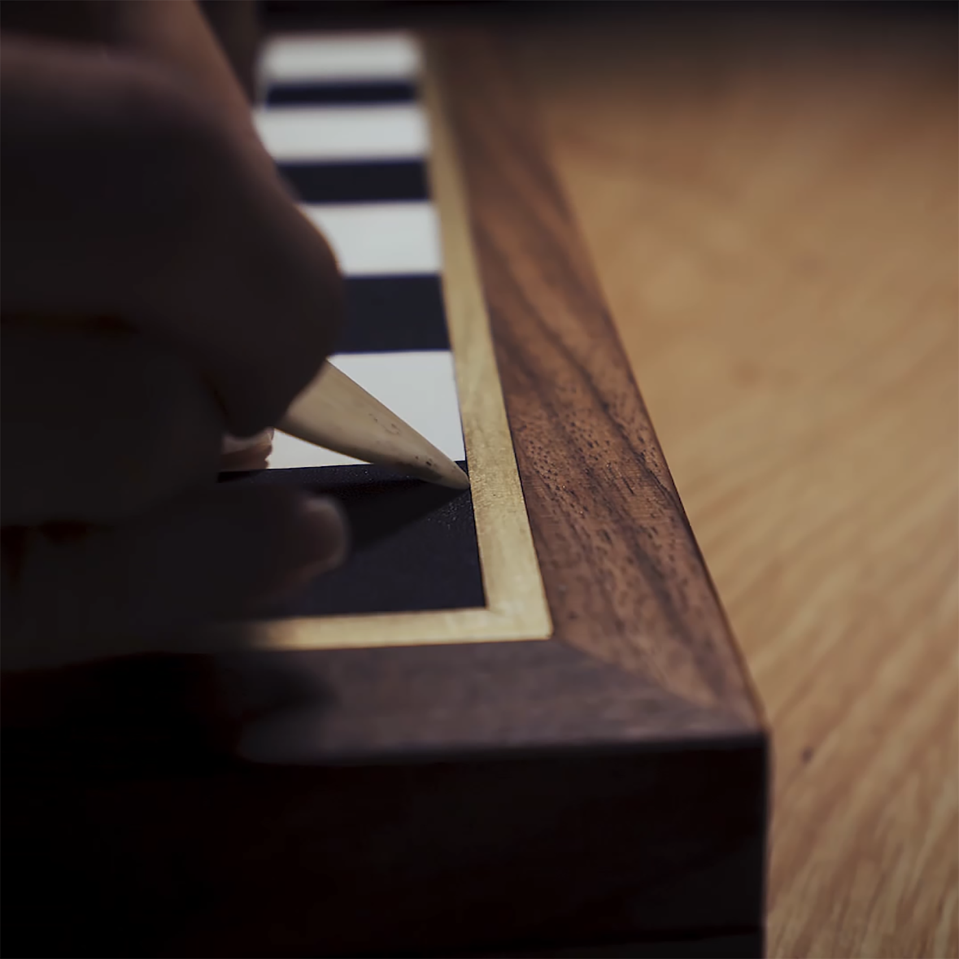 Piece of wood is sorted out and attached by hues and colors so that the surface of the object creates a seamless gradient, well-blended, and on-point look. Backgammon's box, for example, must follow the strict standard: the wood knot’s diameter must be smaller than 5mm, no more than 5 knots on the surface of the box, and the distance between every two knots measured from the center of them must be longer than 3 cm and no more than 3 knots on each triangle piece of wood.
