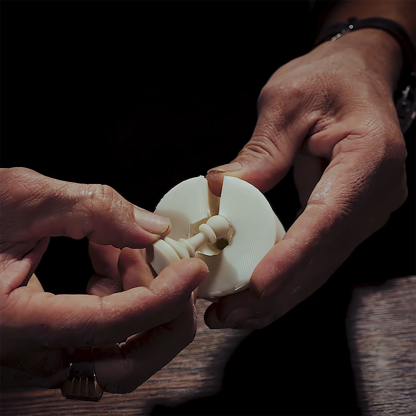 Pouring: This technique is especially crucial when one single piece consists of 2 different colors, e.g. Lumina Chess Pieces. We calculate the exact time, even down to the second for each layer of color to dry out and stay in its perfect form, eventually giving the harmonious gradation blend.