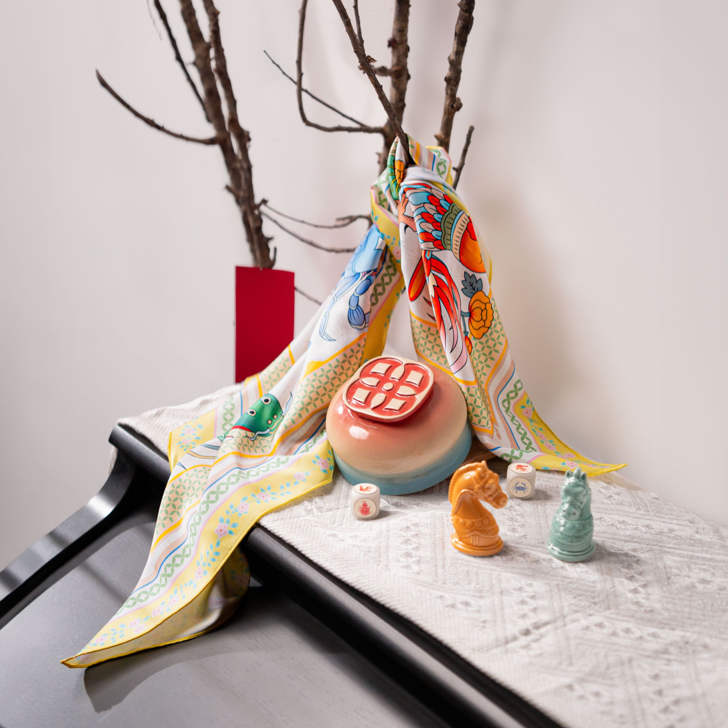 The two in one design brings together Bau Cua (Hoo Hey How) and Ca Ngua (Ludo) in a single set, offering flexibility for every moment of togetherness. The satin playing surface, with its smooth texture and natural drape, allows each roll of the dice to feel fluid and refined. Its softness enhances the playing experience while preserving the warmth and familiarity of a traditional Vietnamese Tet.