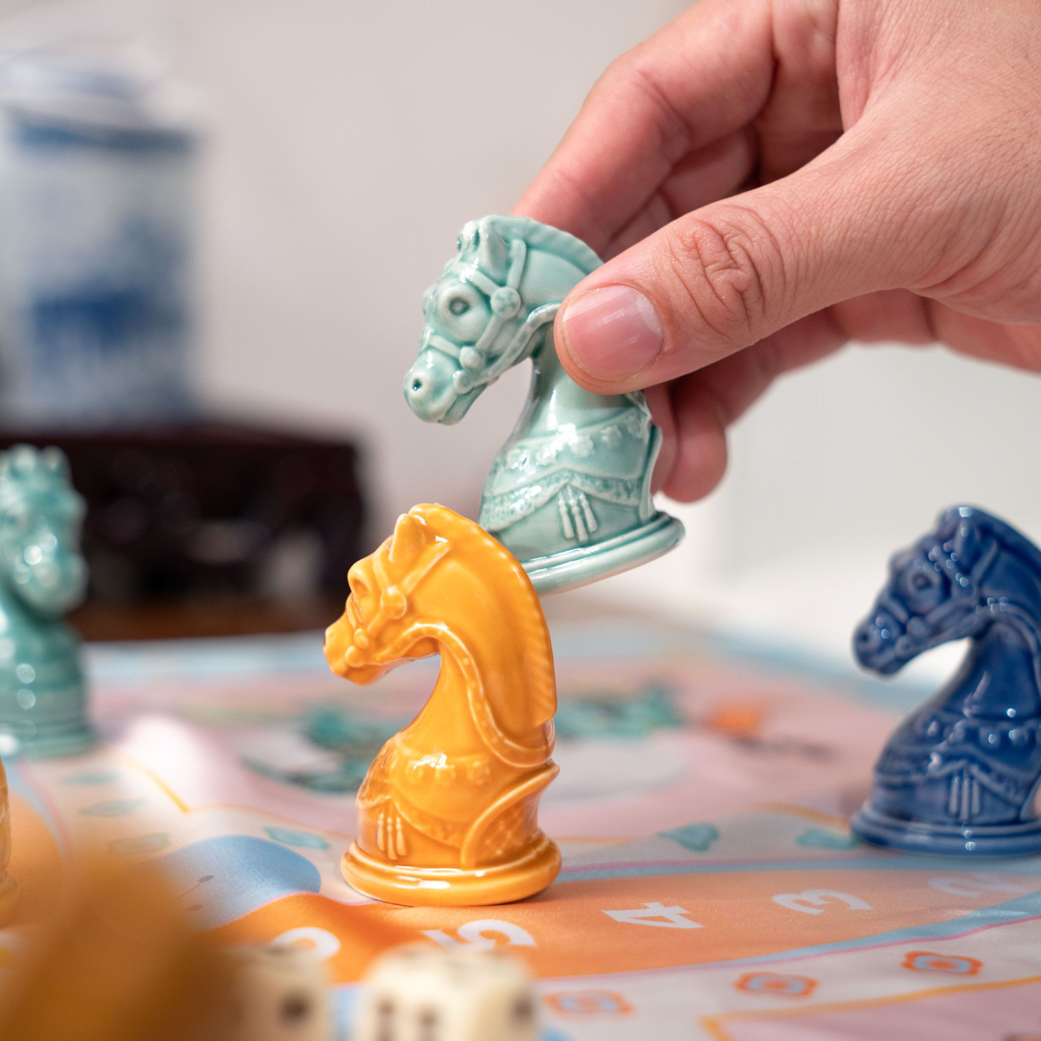 The Ludo pieces are crafted from ceramic, inspired by the imagery of the Huế imperial horse — a symbol of prosperity and good fortune. With graceful forms and refined ceramic glazing, each piece is designed not only for play but also as a display-worthy object.