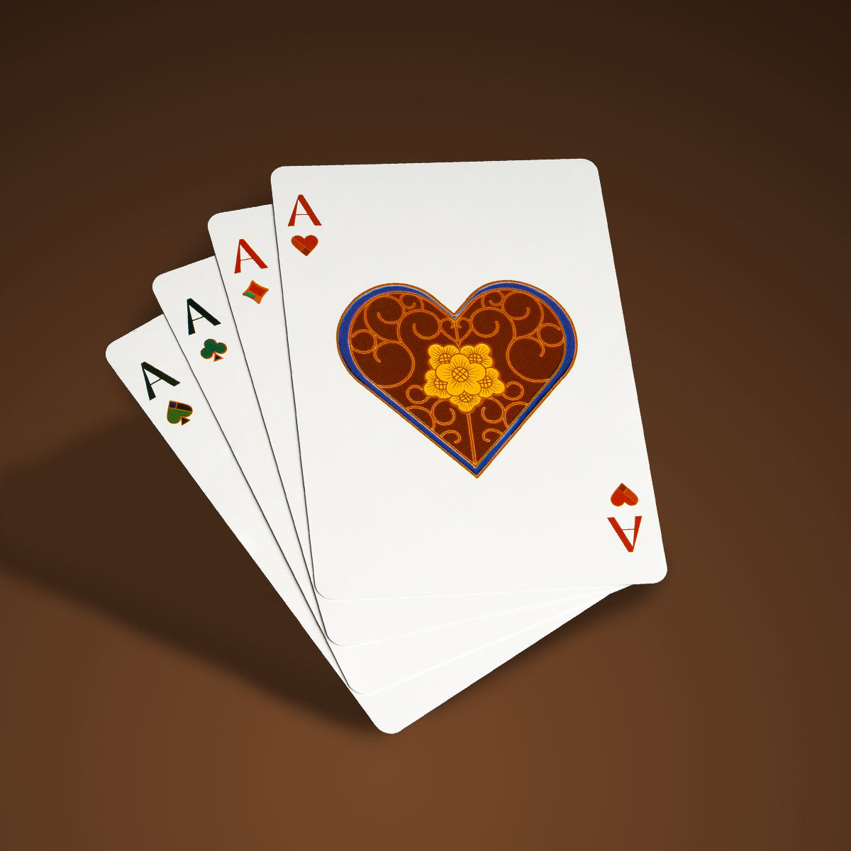 Drawing inspiration from the artistry of Biên Hòa ceramics and the decorative patterns of the Indochine elite's homes, the intricately crafted back of each card captures the refined beauty of Vietnam's ancient aesthetics. Additionally, the four Aces showcase familiar Vietnamese flowers—Apricot Blossom, Lotus, Chrysanthemum, and Bamboo—guiding players on a cultural journey through the timeless elegance of Vietnam's artistic heritage.