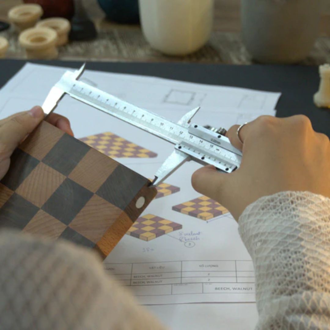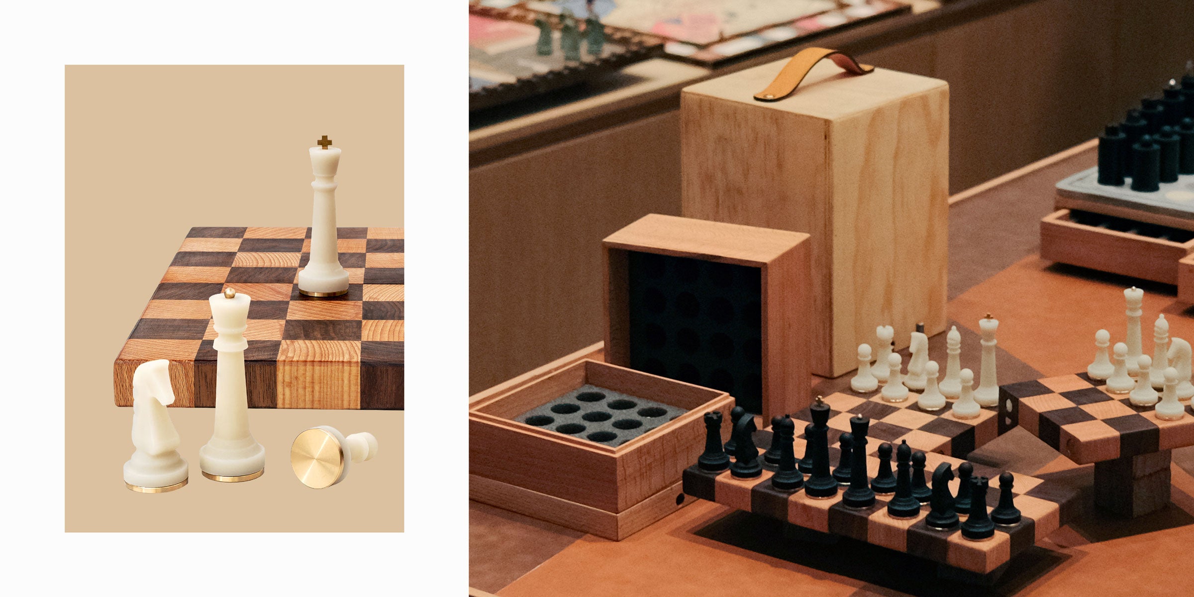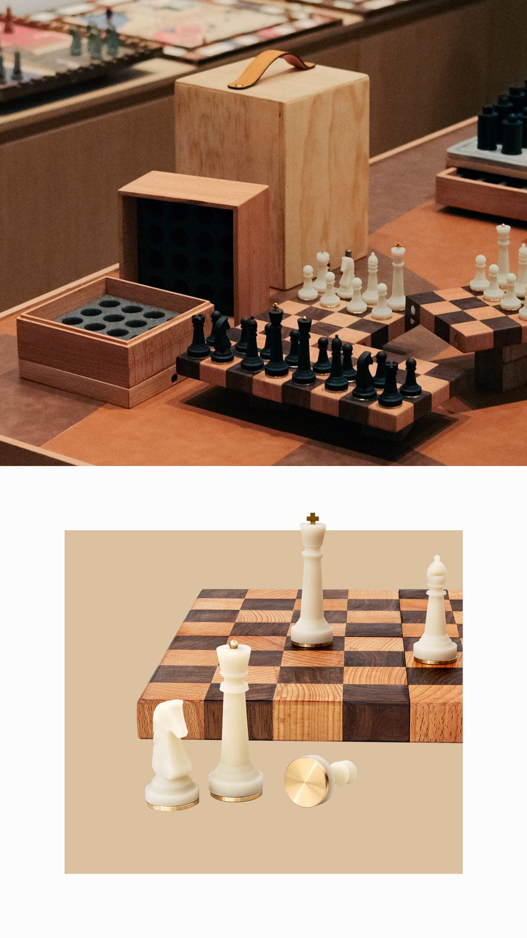Undergoing a meticulous selection process for uniformly colored woods, each square block of walnut and beech wood is carefully glued together to ensure a perfectly fitted and aesthetically pleasing surface. Additionally, Nomad_The Portable Chess Set features sturdy built-in magnets, allowing the board to be effortlessly disassembled into four separate pieces.
