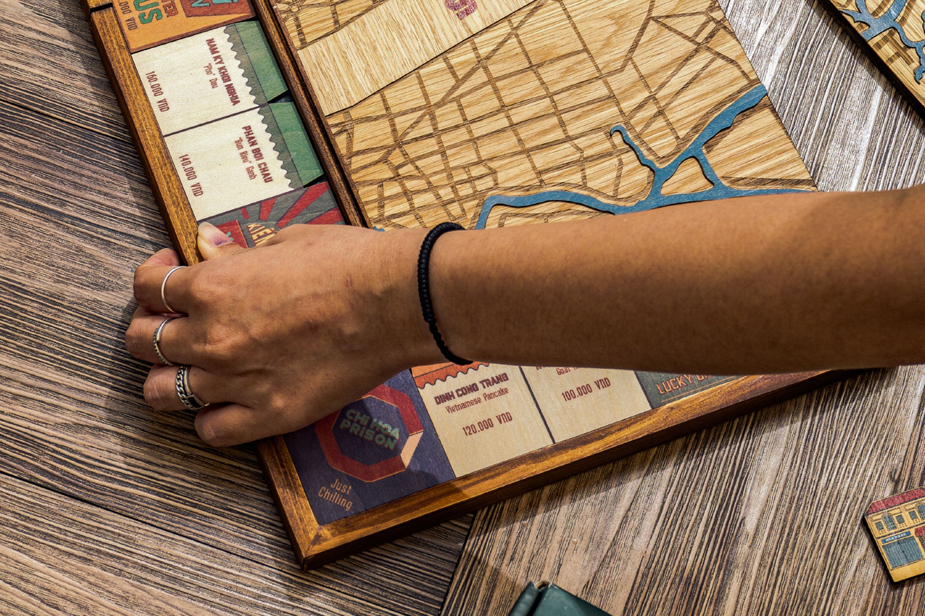 With the state of mind of bringing not only quality products but also the traditional values of Vietnamese handcrafts prides, our artisans have spent 20 hours crafting through 17 processes to make 1 Saigonopoly. Each detail on the board is carefully crafted and put together. Saigonopoly is not just simply a board game but it carries the artisans' enthusiasm for mastering each component.