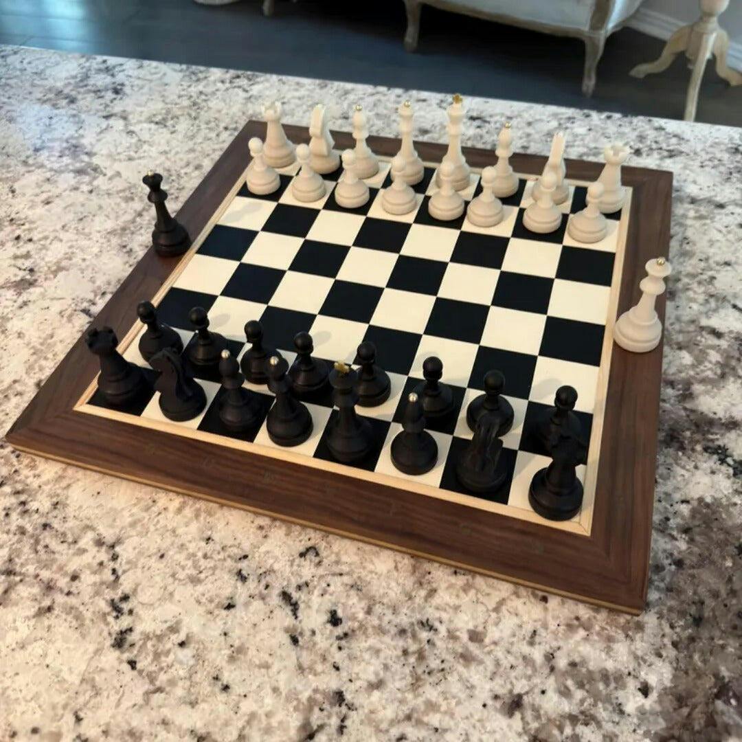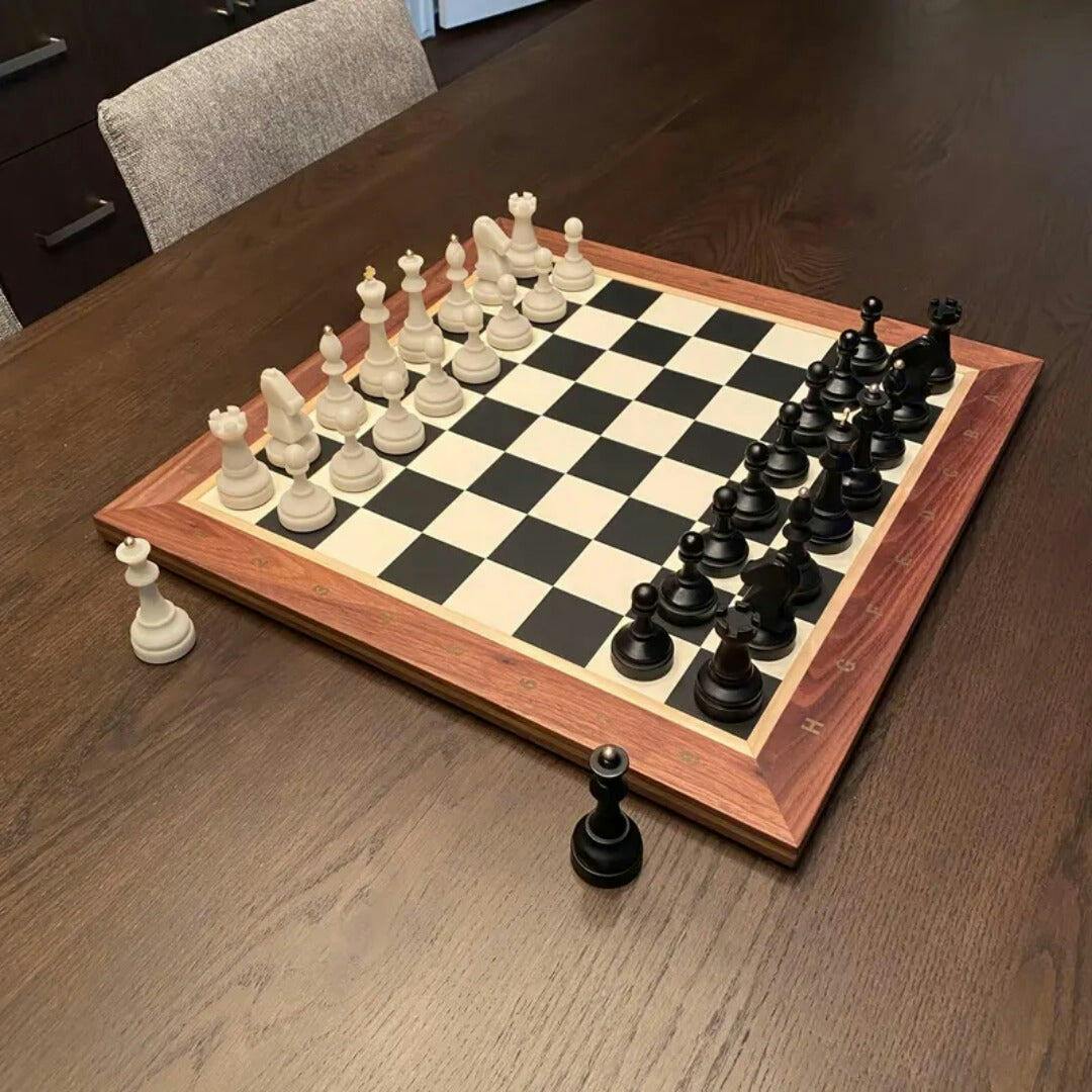 Experience luxury with our Tournament Chess Set, meticulously crafted from premium rosewood for enduring durability and stability. Compliant with World Chess Federation (FIDE) standards, it offers a professional and superior gaming experience. More than a mere chess set, it stands as a true work of art, showcasing precision craftsmanship, a seamless blend of colours and materials, and meticulous attention to detail. A testament to the passion driving chess enthusiasts to new heights of sophistication.