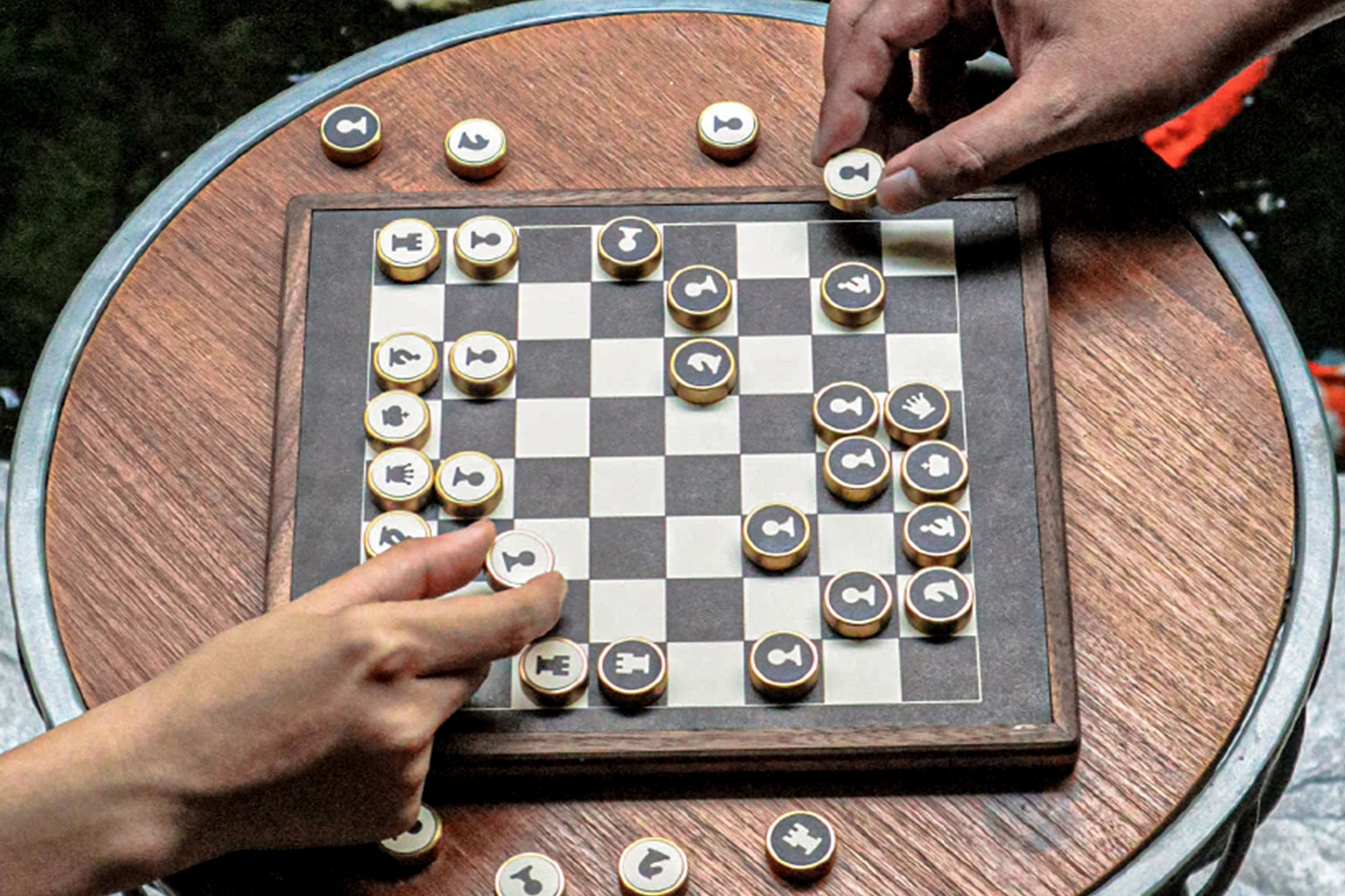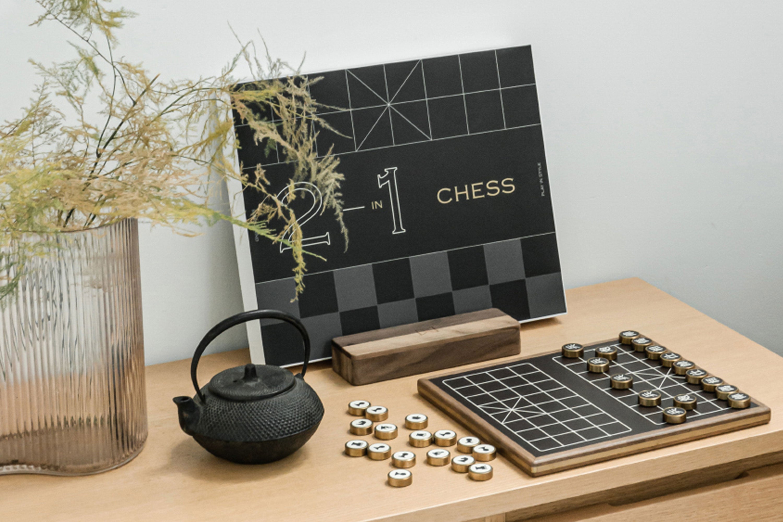 Two in One combines two of the most popular board games in the world: chess and Chinese chess, as the name implies. This compact game board combines the spirit of Western and Eastern cultures, which enhances the experience with just a flip of the board. Its compact size will enable it to display as a decoration item or to take it on a trip.